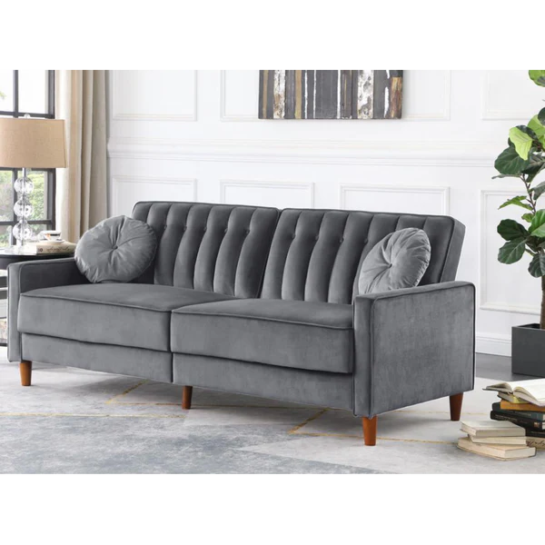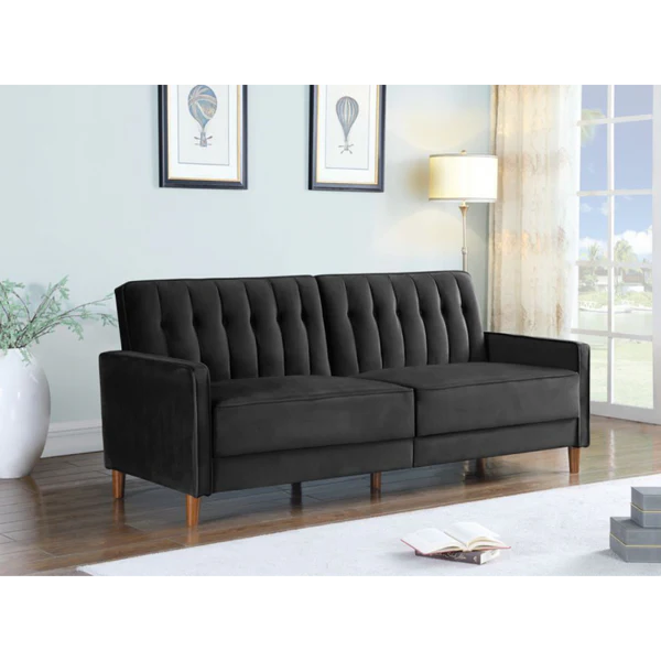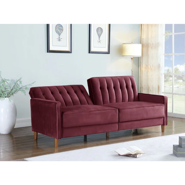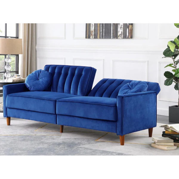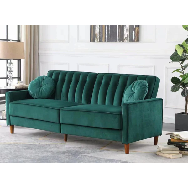 Enhance your home decor with this trendy velvet couch bed, now available in six different colors: green, burgundy, white, grey, black, and blue. This couch bed combines beauty, comfort, and utility in an exquisite package. With rich velvet upholstery and exquisite channel tufting, this adaptable piece transforms from a sumptuous sofa to a comfy bed, making it ideal for living rooms, guest rooms, and flats.
