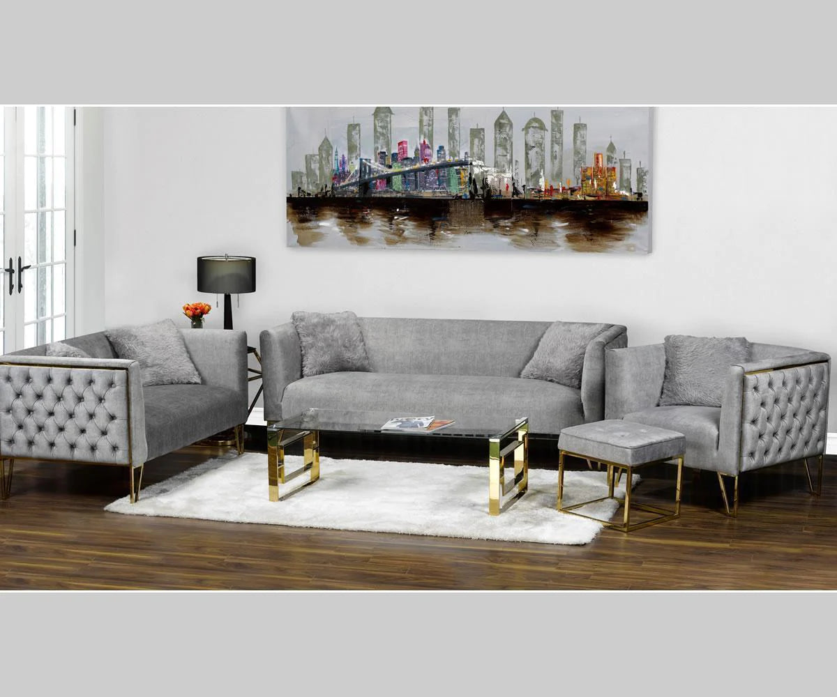 - This sofa set features beautiful gold stainless steel legs that will make it look elegant and persuasive