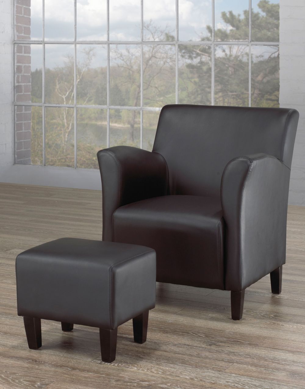 Chair (30”L 27”W 33”H) Ottoman (17”L 14”W 15”H)Colour: Black