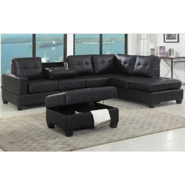 Reversible Sectional Sofa with Ottoman Black PU