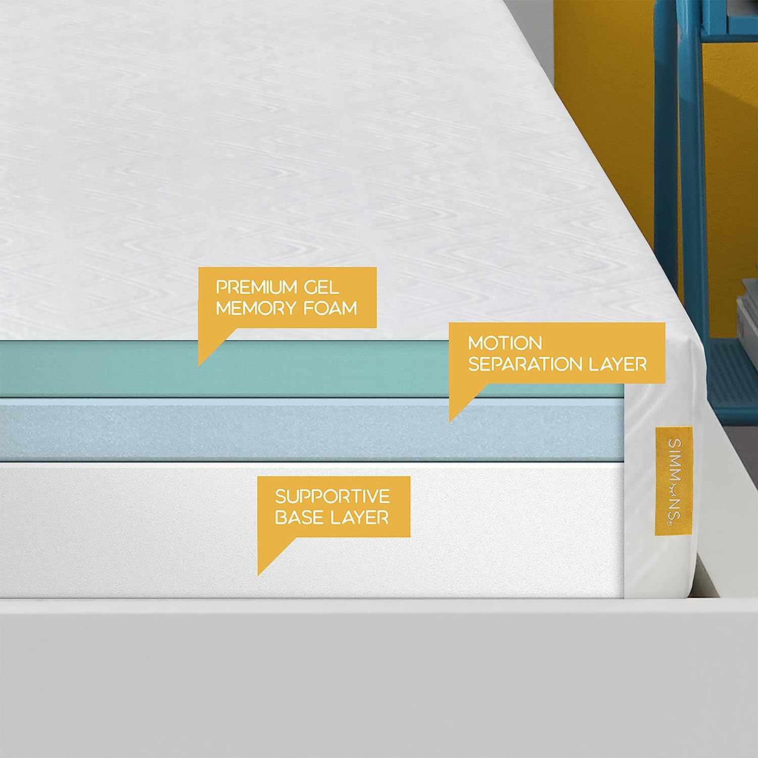 Designed and assembled in Canada, the Simmons 8 Inch Medium Gel Memory Foam Mattress is innovative and convenient. The top layer has gel memory foam that conforms to your body for pressure point relief and helps keep you at the ideal sleeping temperature. Next is a motion separation layer to isolate the movement between two sleepers for undisturbed sleep. On the bottom is a supportive base layer of foam that helps relieve tension and stress while providing lasting back support. Foams are Certi-PUR US certified and do not contain any harmful chemicals or materials. The mattress comes conveniently packaged in a box for easy transport and has a 10-year limited warranty.