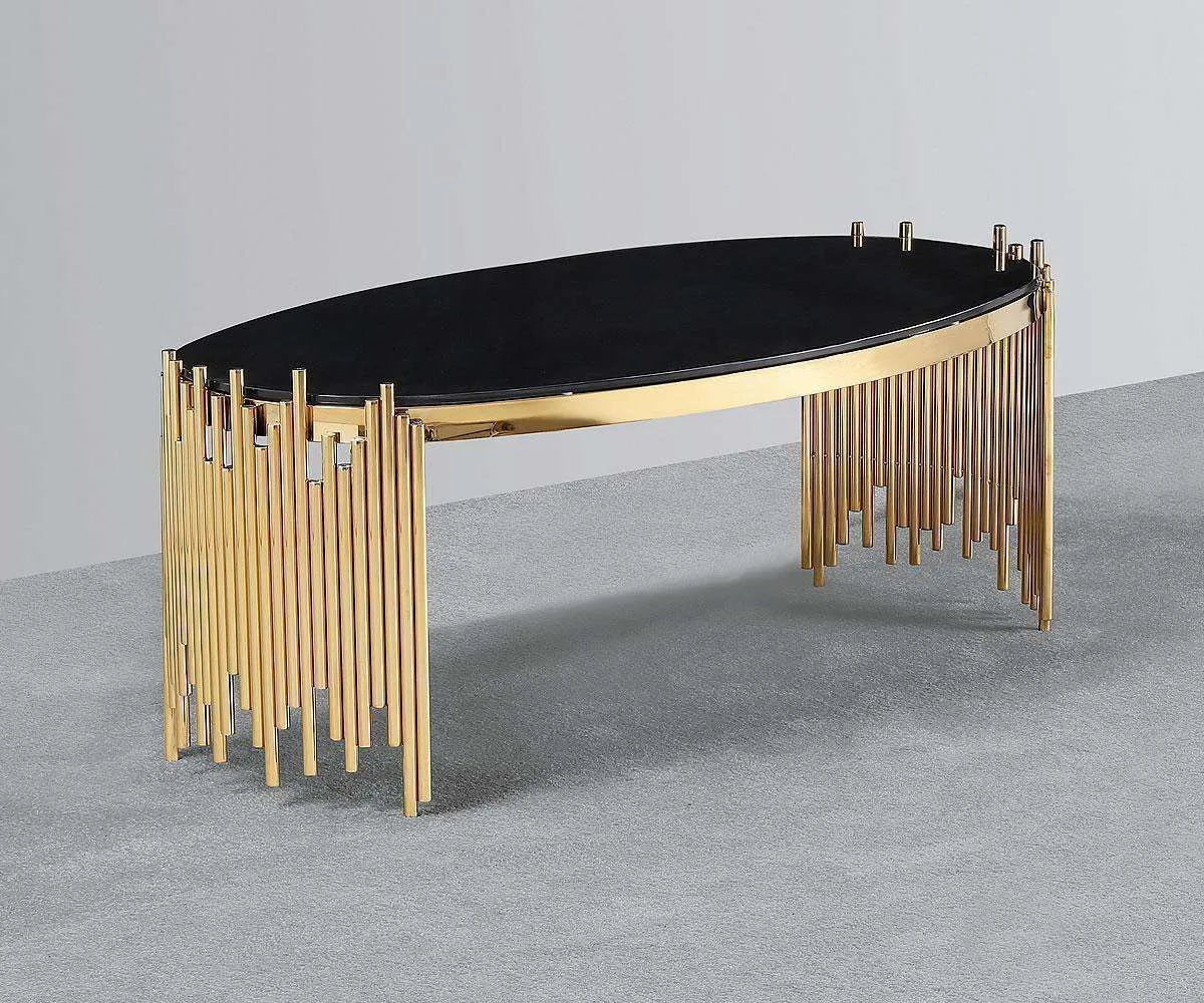 - Sturdy tempered glass table tops on durable, Gold plated metal frames