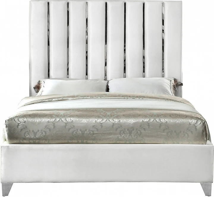 Velvet Fabric, Chrome Vertical Channel Headboard white IF5622 /Black IF5621